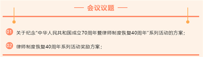 会上,市律师行业党委书记郑林向与会人员阐述了市律协拟举办庆祝“中华人民共和国成立70周年暨律师制度恢复40周年”系列活动的原因及意义,并传达了龙岩市司法局党组书记、局长余德辉同志的指示。余德辉局长强调,这么多年来,我市律师对龙岩的发展起到很大的积极作用,无论是维护社会稳定,服务经济发展,还是宪法宣传等都是不可或缺的。今年是中华人民共和国成立70周年暨律师制度恢复40周年,通过举办庆典晚会的方式向社会民众宣传社会主义法治和律师制度,增强我市律师的责任感、荣誉感、使命感,促进我市律师业的健康发展。